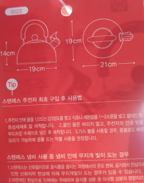 이름은 귀여운데, 주전자는 어디까지나 실사용이 중요하니까 안내 문구부터 꼼꼼히 봤다.