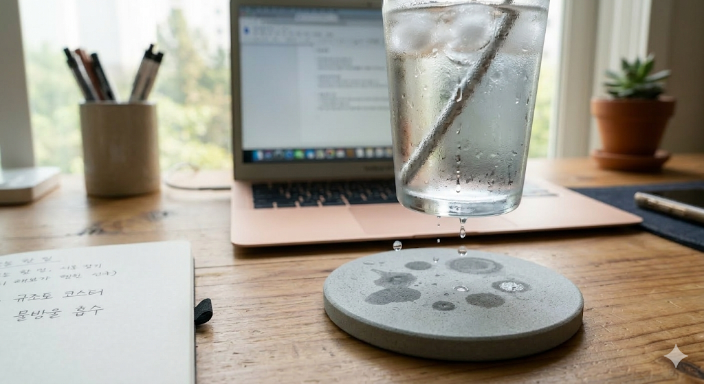 유리컵을 코스터 위에 올려봤어요.
