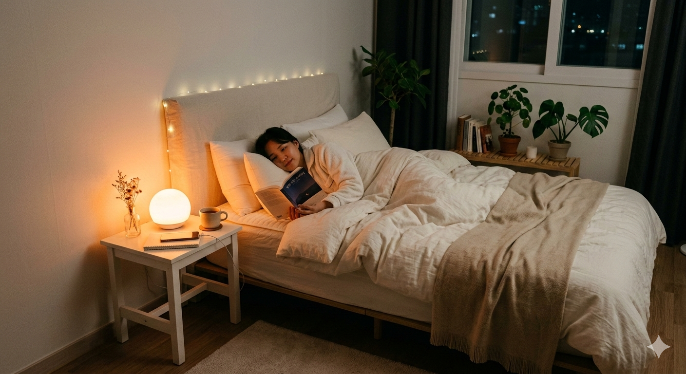 자기 전 취침 전단계에 켜두면 눈이 편안하고,즉시 잠들기 좋은 분위기가 만들어집니다.